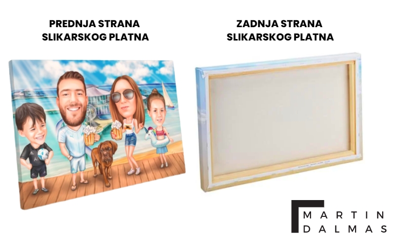 Slikarsko platno je že končni izdelek in ne boste morali kupovati dodatnih okvirjev. Vaša karikatura bo natisnjena na bombažnem platnu 300g/m2, ki je napeto preko lesenega okvirja. Karikatura je natisnjena preko robov, kar daje vtis pravega umetniškega dela. (Preverite fotografije)
